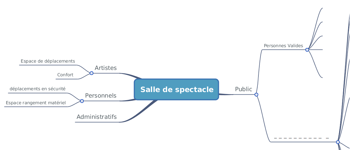 Le cahier des charges fonctionnel Reconstituer la carte mentale ci-dessous et compléter la en incluant l’ensemble de vos idées concernant l’aménagement d’une salle de spectacle (type de public, type de personnels, besoins, contraintes de chacun, sécurité….). Utiliser l'application suivante :