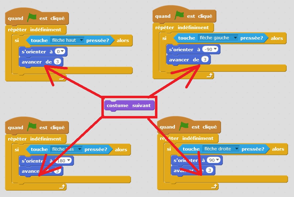 jeu, améliorer la programmation afin de passer au costume suivant à