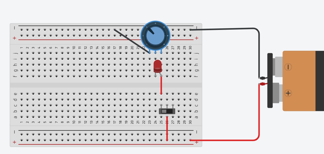 Puis remplacez la résisance par un potentiomètre :
