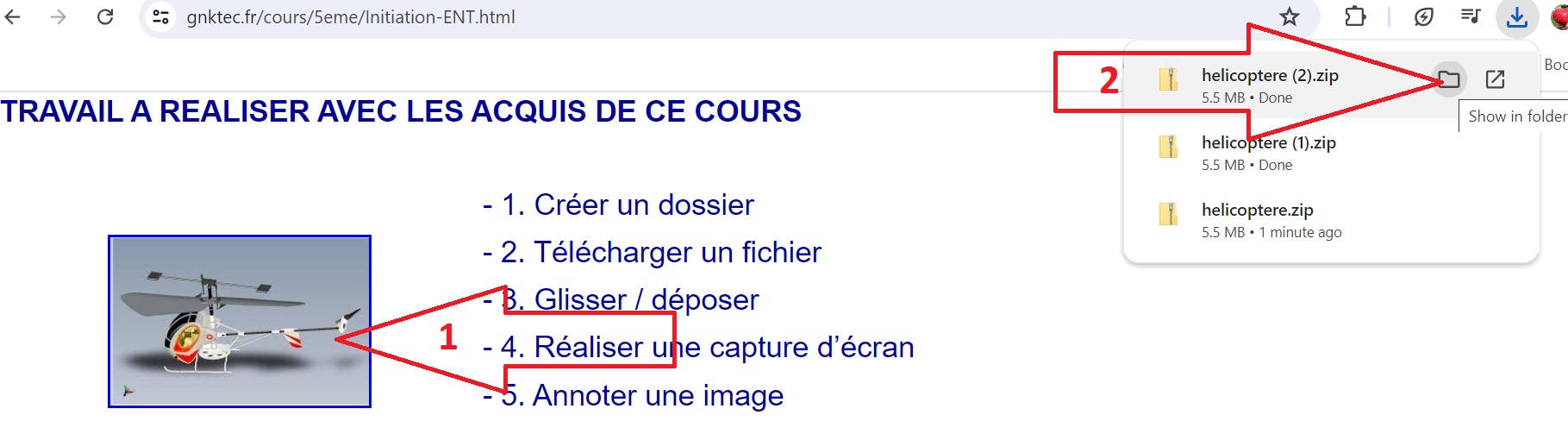4.Réaliser une capture d'écran de l'hélicoptère légendé et l'enregistrer dans le dossier "Techno" sous le nom hélicoptère.