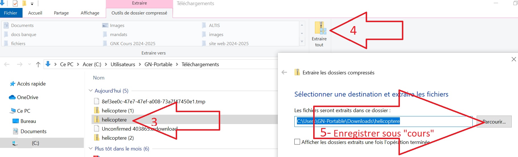 2.Télécharger le fichier hélicoptère.zip ci-dessus et enregister hélicoptère.exe dans le dossier cours créé précédement.